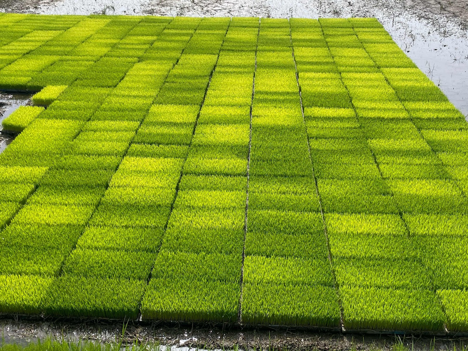 桜も散り、枝には若葉が日に日に大きくなっています。散歩みちの田園には稲の苗が置いてありました。早くも田植えの準備です。本日28°で夏日の予想です。